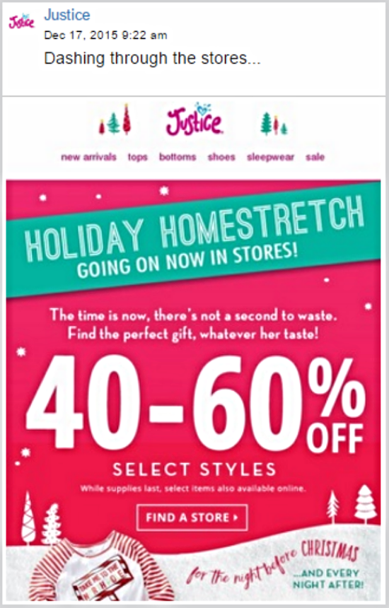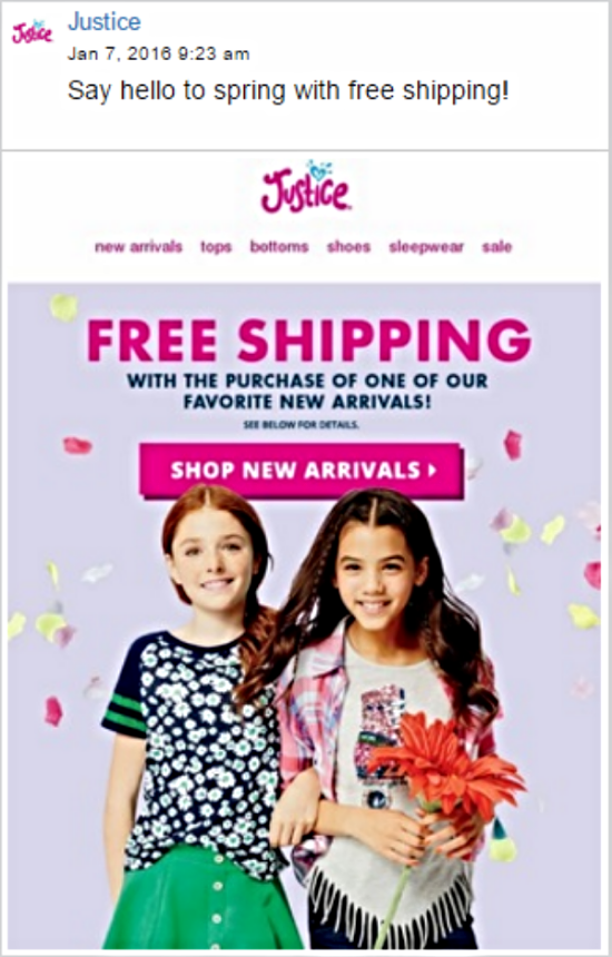 Justice is a retailer specializing in fashion for tween girls. As a member of the brand's digital marketing team, I wrote marketing copy for email subject lines and push notifications. I also proposed and led a project to enhance on-page content, providing copy direction for product descriptions and effectively boosting the site's overall SEO value.